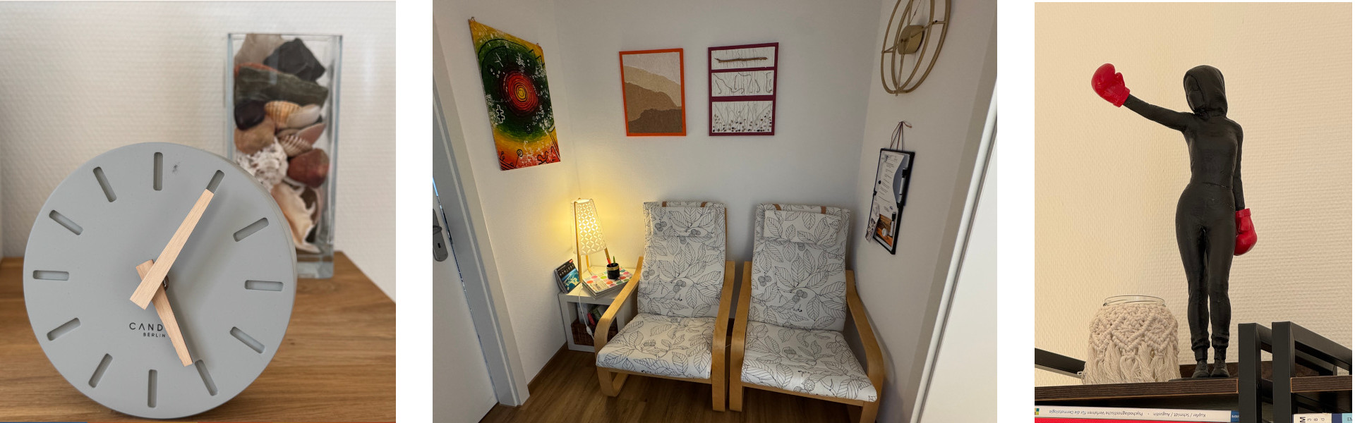 | Bitte informieren Sie sich auf den folgenden Seiten über mein Selbstverständnis als Psychotherapeutin, die Leitgedanken meiner Arbeitsweise und die Schwerpunkte meiner therapeutischen Tätigkeit, erfahren Sie etwas über meinen beruflichen Werdegang sowie über die gesetzlichen und wissenschaftlichen Grundprinzipien ambulanter Psychotherapie. |